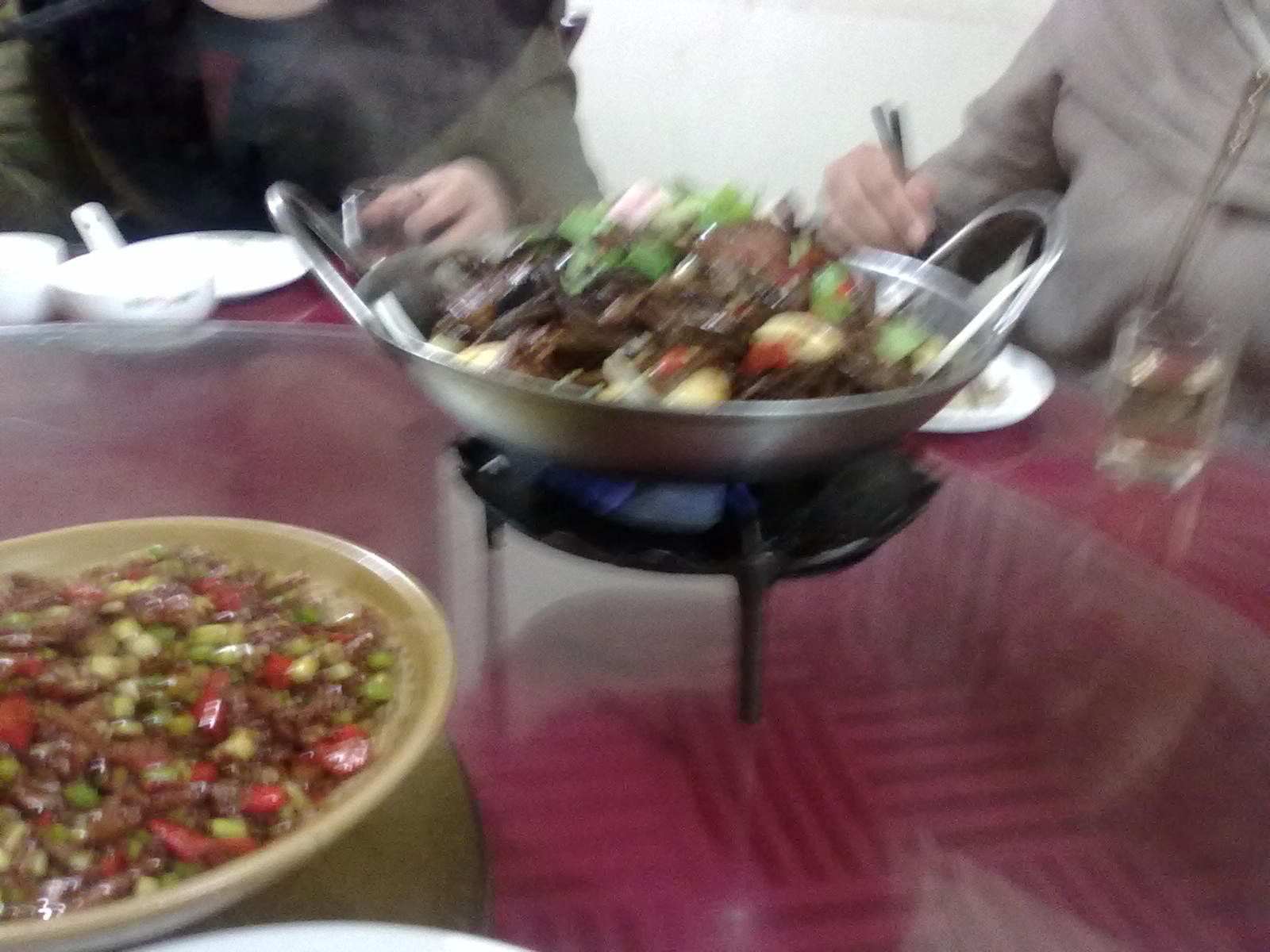 看見美味了,手有點抖,照的不太清楚,辣炒雞胗和麻辣雞,看著色香味,絕!