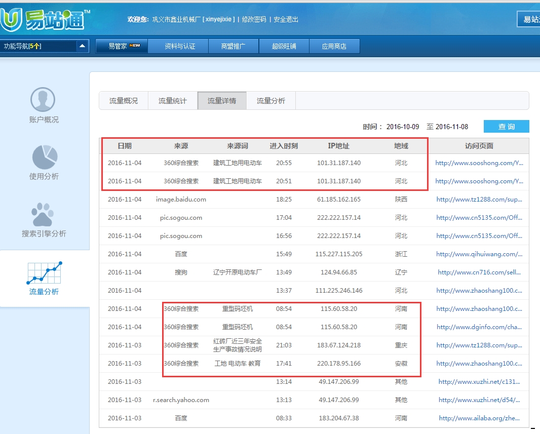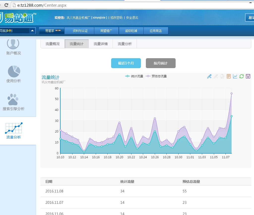 鑫業(yè)機械易站通流量分析【每天可以預(yù)估到的流量(如上圖)】