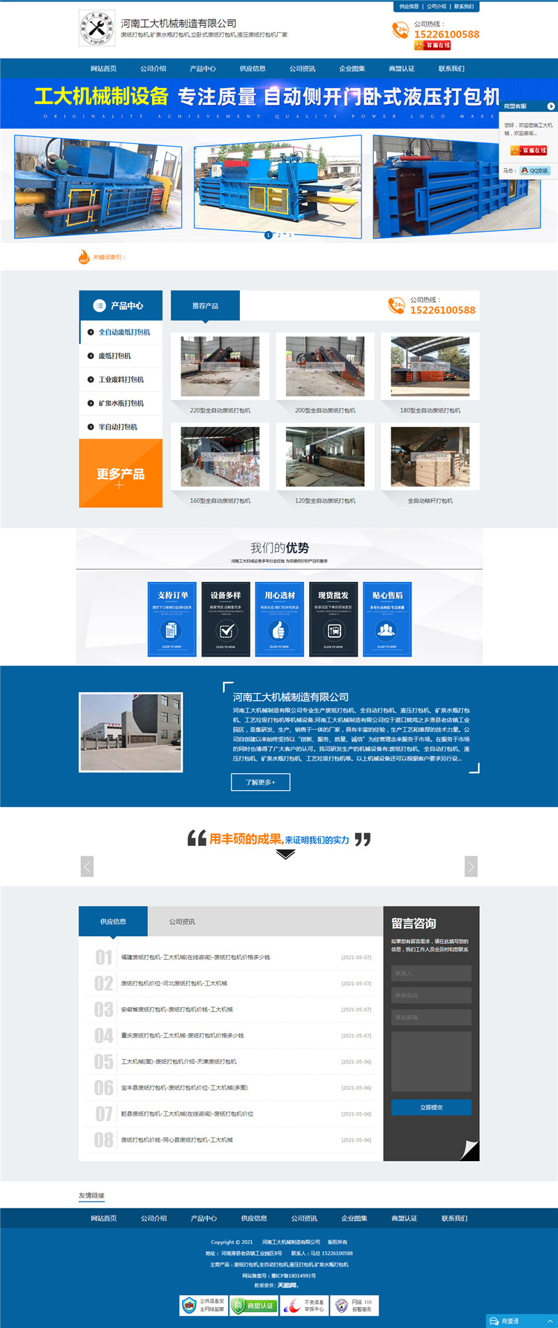 河南工大機械制造有限公司專業(yè)生產(chǎn)廢紙打包機、全自動打包機、液壓打包機、礦泉水瓶打包機、工藝?yán)虬鼨C等機械設(shè)備