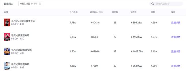 實(shí)際上,毛光光的帶貨直播也是選擇了“美妝”的類目,幾場(chǎng)直播的GMV都達(dá)到了百萬(wàn)級(jí)別。