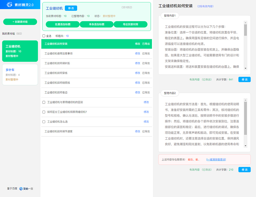 基于百度文心一言,阿里通義千問(wèn),AIGC根據(jù)標(biāo)題來(lái)生成內(nèi)容,每個(gè)標(biāo)題,最多3段內(nèi)容,遇到敏感詞,會(huì)提示出來(lái)。