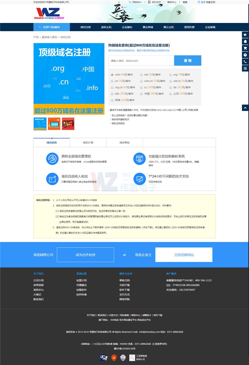 鄭州偉置電子科技智能建站平臺http://ys.zzhaofang.com為您提供域名注冊、虛擬主機、企業(yè)建站、翼企商城、翼云主機、租用托管、企業(yè)郵箱等服務(wù)。該網(wǎng)站建設(shè)公司專注于為您提供入門版、標(biāo)準版、高級版、旗艦版等網(wǎng)站建設(shè)服務(wù),建站價格比較優(yōu)惠,性價比業(yè)比較高,如果您有這方面的需要,我們公司是您不錯的選擇。